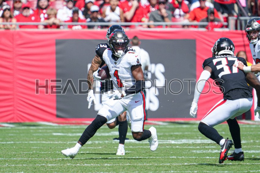 Tampa Bay, Florida, USA, October 22, 2023, Tampa Bay Buccaneers Running back Rachaad White #1 makes a run in the first half at Raymond James Stadium. (Photo Credit: Marty Jean-Louis)