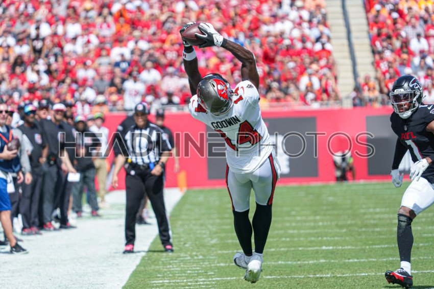 Tampa Bay, Florida, USA, October 22, 2023, Tampa Bay Buccaneers Wide Receiver Chris Godwin #14 makes a catch in the first half at Raymond James Stadium. (Photo Credit: Marty Jean-Louis)