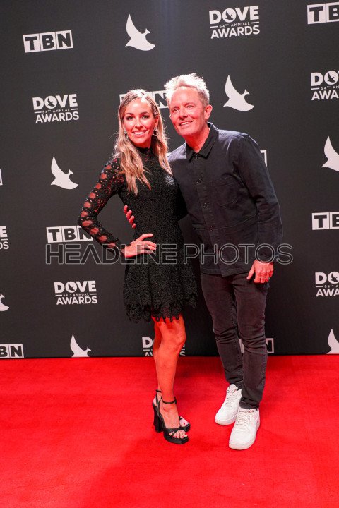 Nashville, Tennessee, USA, October 17, 2023. Chris Tomlin and his wife On the red carpet during 54th Annual GMA Dove Awards at the Allen Arena at Lipscomb University (Photo Credit: Marty Jean-Louis)