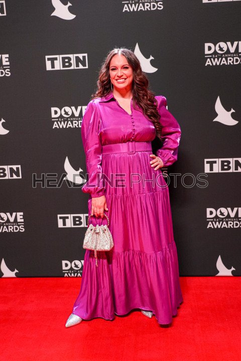 Nashville, Tennessee, USA, October 17, 2023. Christine D'Clario On the red carpet during 54th Annual GMA Dove Awards at the Allen Arena at Lipscomb University (Photo Credit: Marty Jean-Louis)