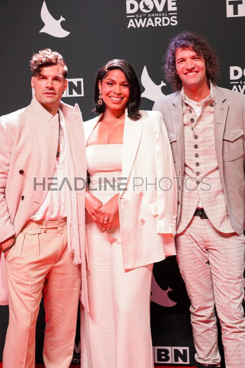 Nashville, Tennessee, USA, October 17, 2023. For King and Country (Jordan Sparks, Joel Smallbone and Luke Small bone) On the red carpet during 54th Annual GMA Dove Awards at the Allen Arena at Lipscomb University (Photo Credit: Marty Jean-Louis)