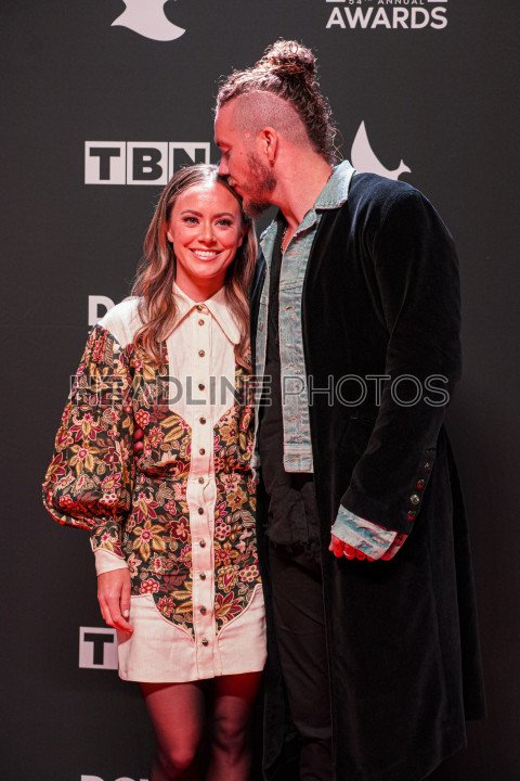 Nashville, Tennessee, USA, October 17, 2023. Brandon Lake and his wife On the red carpet during 54th Annual GMA Dove Awards at the Allen Arena at Lipscomb University (Photo Credit: Marty Jean-Louis)