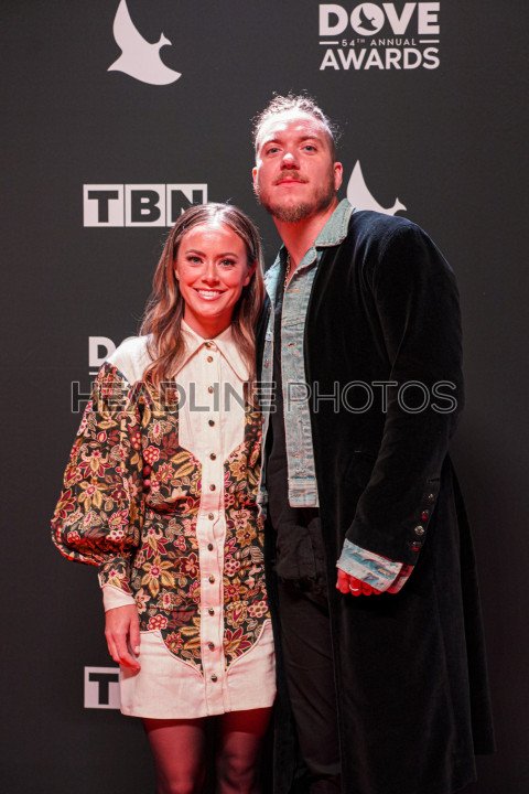 Nashville, Tennessee, USA, October 17, 2023. Brandon Lake and his wife On the red carpet during 54th Annual GMA Dove Awards at the Allen Arena at Lipscomb University (Photo Credit: Marty Jean-Louis)