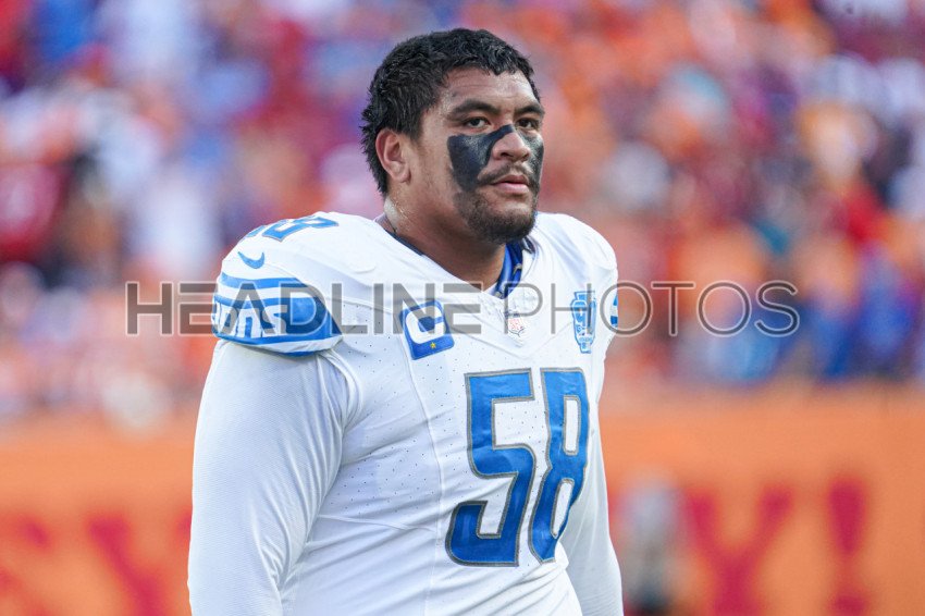 Tampa Bay, Florida, USA, October 15, 2023, Detroit Lions player Penei Sewell #58 at Raymond James Stadium. (Photo Credit: Marty Jean-Louis)