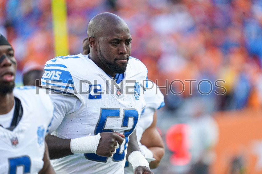 Tampa Bay, Florida, USA, October 15, 2023, Detroit Lions player Charles Harris #53 at Raymond James Stadium. (Photo Credit: Marty Jean-Louis)