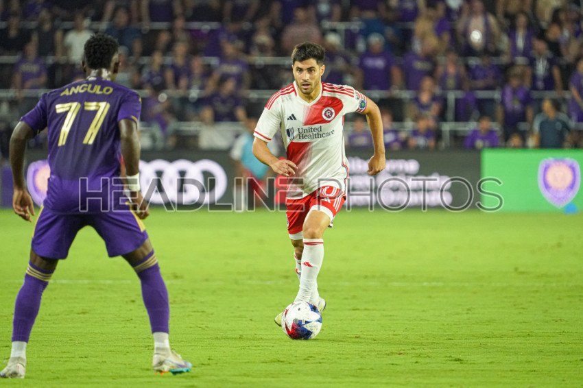 Orlando, Florida, USA, October 7, 2023, New England Revolution MIdfielder Carles Gil #10 looks to make a pass in the first half at Exploria Stadium. (Photo Credit: Marty Jean-Louis)