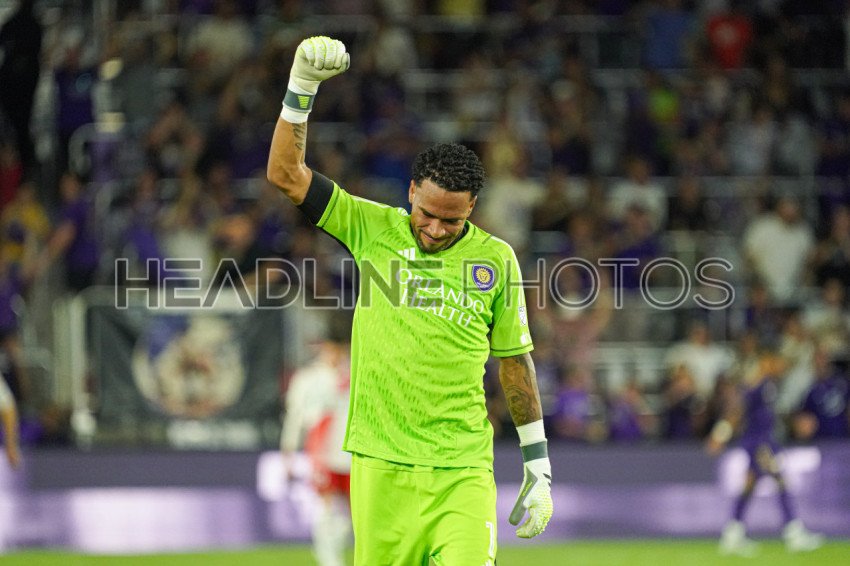 Orlando, Florida, USA, October 7, 2023, Orlando City SC goalkeeper Pedro Gallese #1 celebrate a gaol in the first half at Exploria Stadium. (Photo Credit: Marty Jean-Louis)
