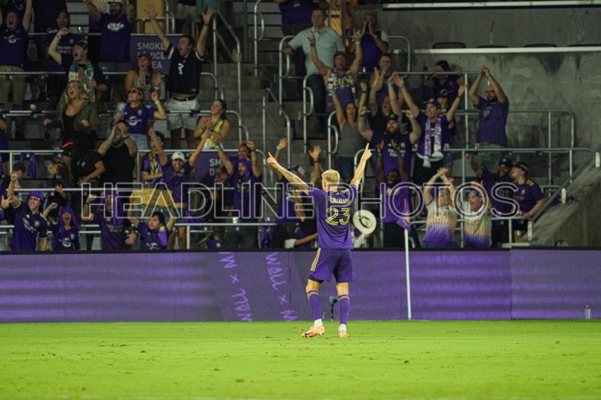 Orlando, Florida, USA, October 7, 2023, Orlando City SC Midfielder Dagur Thorhallsson #23 celebrate a goal in the first half at Exploria Stadium. (Photo Credit: Marty Jean-Louis)