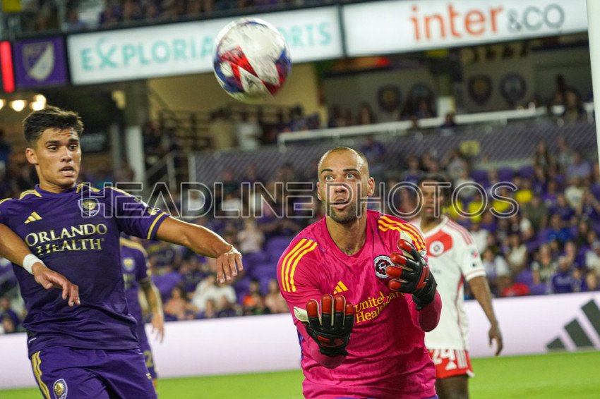 Orlando, Florida, USA, October 7, 2023, New England Revolution goalkeeper Earl Edwards Jr. #36 makes a save in the second half at Exploria Stadium. (Photo Credit: Marty Jean-Louis)