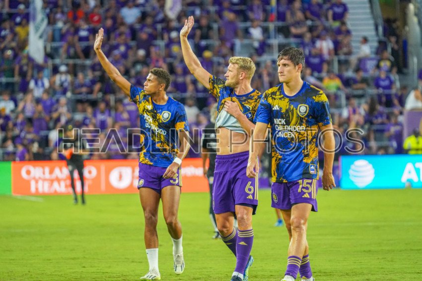 Orlando, Florida, USA, September 24, 2023, Orlando City SC player Rafael Santos #3 and Robin Jansson #6 wave to fans at Exploria Stadium. (Photo Credit: Marty Jean-Louis)