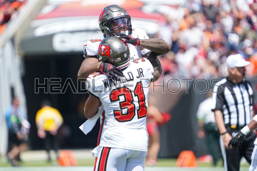 Tampa Bay, Florida, USA, September 17, 2023, Tampa Bay Buccaneers players Antoine Winfield Jr #31 celebrate at Raymond James Stadium. (Photo Credit: Marty Jean-Louis)