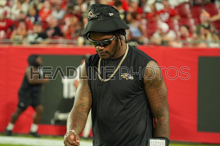 Tampa Bay, Florida, USA, August 26, 2023, Baltimore Ravens quarterback Lamar Jackson at Raymond James Stadium. (Photo Credit: Marty Jean-Louis)