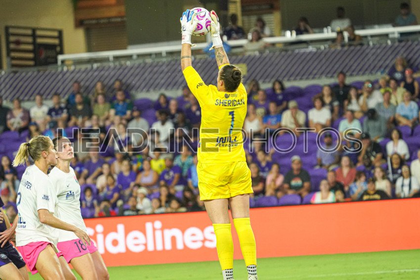 Orlando, Florida, USA, August 25, 2023, San Diego Wave goalkeeper Kailen Sheridan #1 makes a save at Exploria Stadium. (Photo Credit: Marty Jean-Louis)