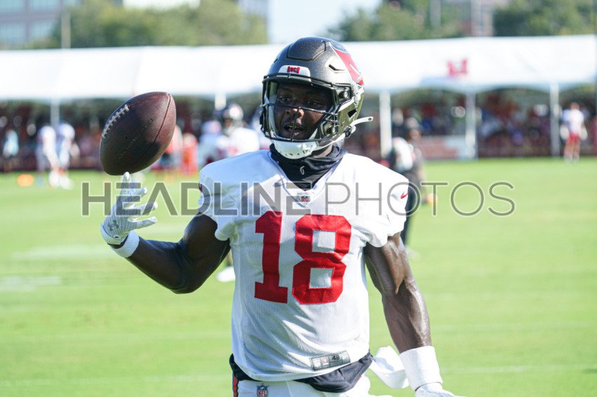 Tampa, Florida, USA, August 14, 2023, Tampa Bay Buccaneers player Rakim Jarrett #18 during a Training Camp at Advent Health Training Center . (Photo Credit: Marty Jean-Louis)