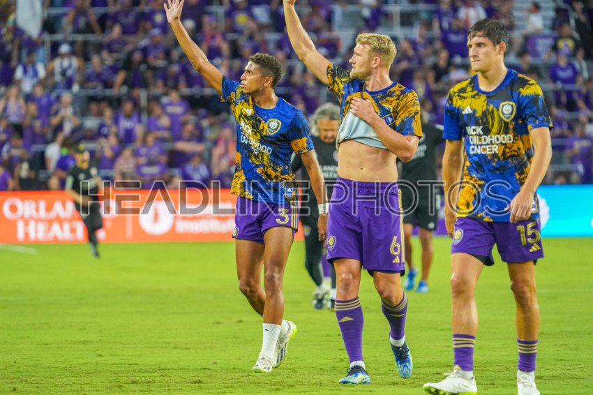 Orlando, Florida, USA, September 24, 2023, Orlando City SC player Rafael Santos #3 and Robin Jansson #6 wave to fans at Exploria Stadium. (Photo Credit: Marty Jean-Louis)