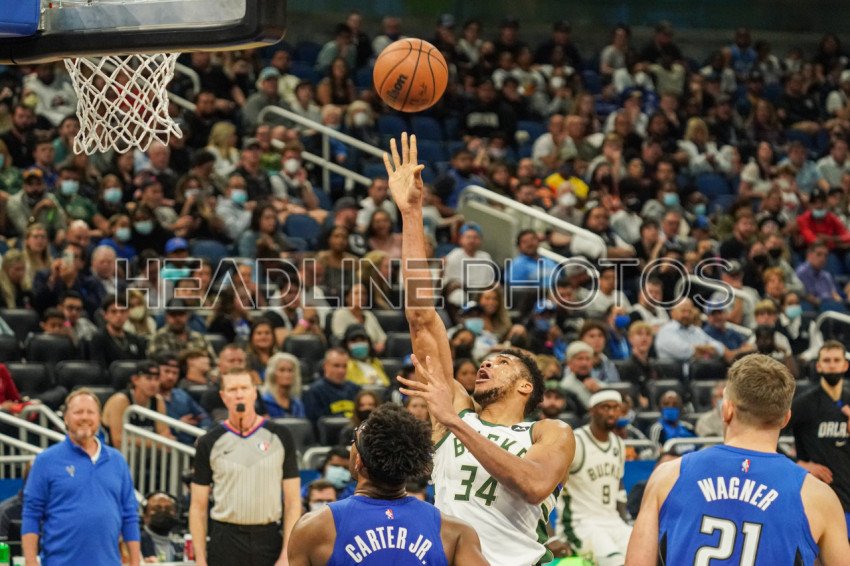 Orlando, Florida, USA, December 30, 2021, Milwaukee Bucks forward Giannis Antetokounmpo #34 takes a a shot during the second half at the Amway Center. (Photo Credit: Marty Jean-Louis)