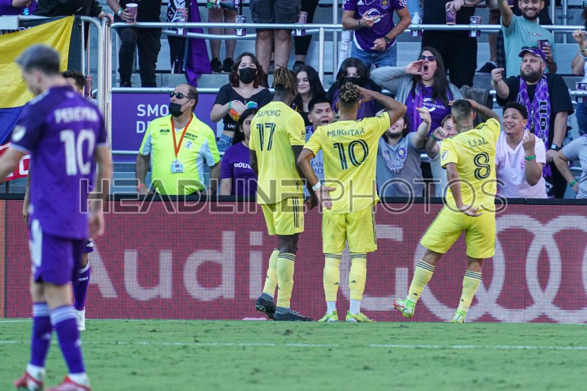 Orlando, Florida, USA, October 31, 2021, Nashville SC celebrate goal against Orlando City at Exploria Stadium (Photo Credit: Marty Jean-Louis)