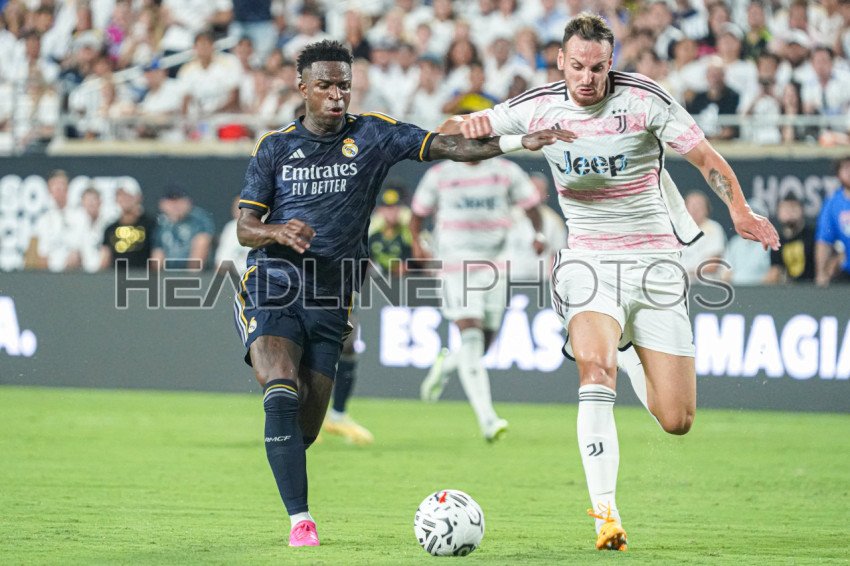 Orlando, Florida, USA, August 1, 2023, Real Madrid player Vini Jr #7 makes a run up field during the Soccer Championship Tour Hosted by the Florida Cup at Camping World Stadium . (Photo Credit: Marty Jean-Louis)