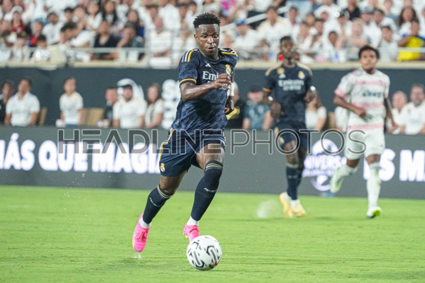 Orlando, Florida, USA, August 1, 2023, Real Madrid player Vini Jr #7 makes a run up field during the Soccer Championship Tour Hosted by the Florida Cup at Camping World Stadium . (Photo Credit: Marty Jean-Louis)