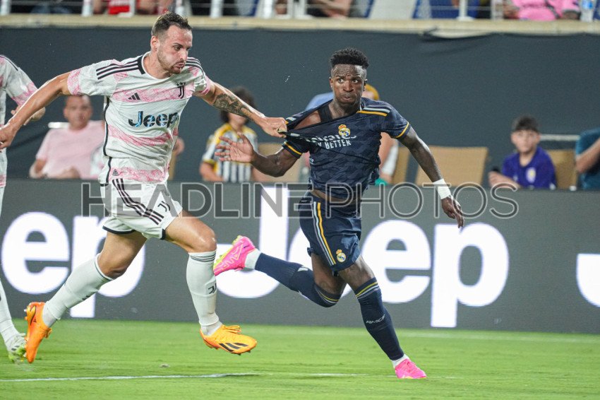 Orlando, Florida, USA, August 1, 2023, Real Madrid player Vini Jr #7 makes a run up field during the Soccer Championship Tour Hosted by the Florida Cup at Camping World Stadium . (Photo Credit: Marty Jean-Louis)