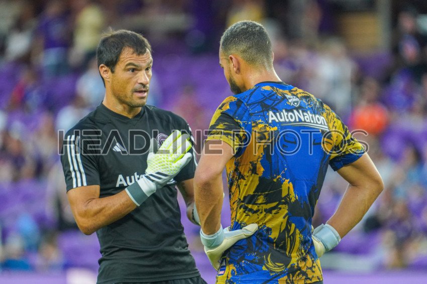 Orlando, Florida, USA, September 24, 2023, Inter Miami goalkeeper Drake Callender #1 speaks with his coach at Exploria Stadium. (Photo Credit: Marty Jean-Louis)