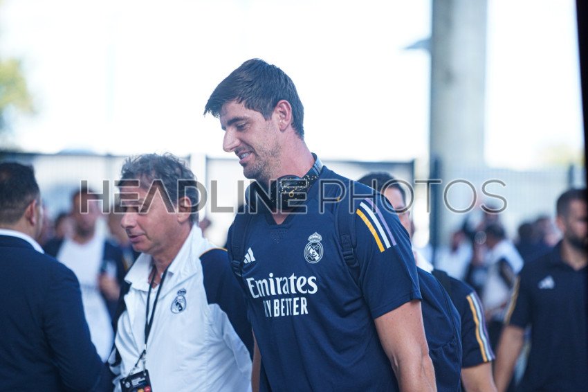 Orlando, Florida, USA, August 1, 2023, Real Madrid goalkeeper Thibaut Courtois (right) arriving before the Soccer Championship Tour Hosted by the Florida Cup at Camping World Stadium . (Photo Credit: Marty Jean-Louis)