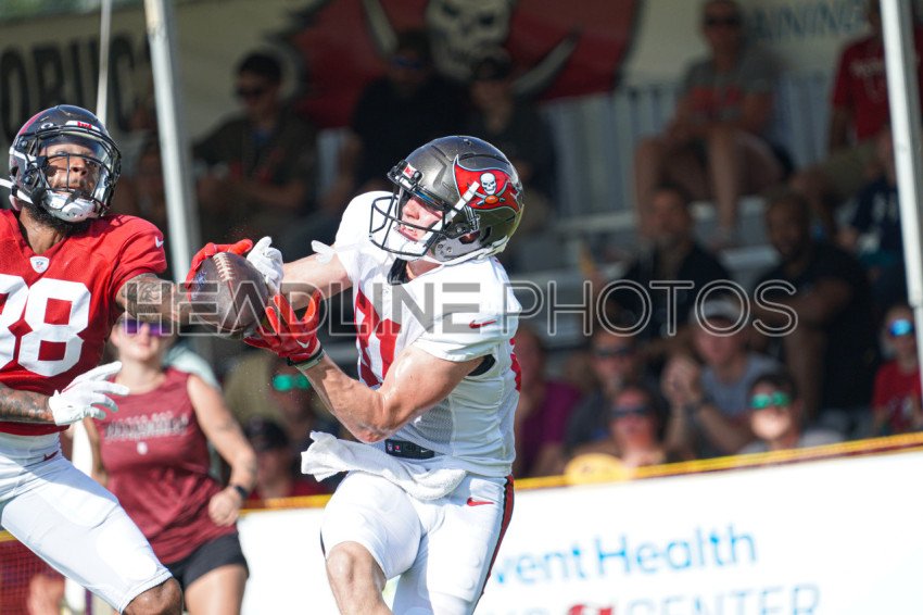 Tampa, Florida, USA, July 31, 2023, Tampa Bay Buccaneers players Derrek Pitts Jr #38 and Ryan Miller #81 during a Training Camp at Advent Health Training Center . (Photo Credit: Marty Jean-Louis)