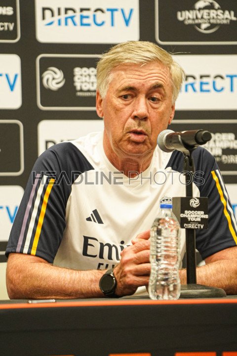 Orlando, Florida, USA, August 1, 2023, Press Conference with Real Madrid Manger Carlo Ancelotti before their Match against Juventus at Camping World Stadium . (Photo Credit: Marty Jean-Louis)