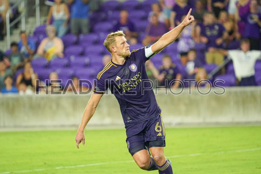 Orlando, Florida, USA, July 21, 2023, Orlando City SC defender Robin Jansson #6 celebrate after making a penalty kick at Exploria Stadium. (Photo Credit: Marty Jean-Louis)