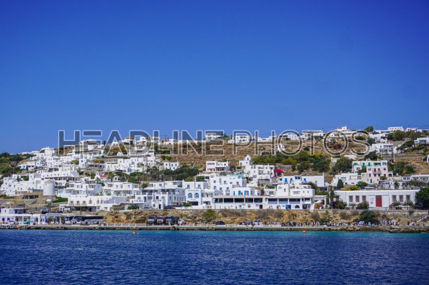 greece greek island mykonos best places in europe blue water boat boating homes mountain painting picturesque summer top places to visit tourists travel vacation water whiteSimilar Photos