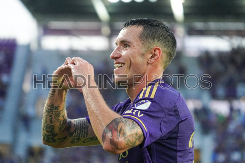 Orlando, Florida, USA, May 27, 2023, Orlando City SC player Kyle Smith #24 reacts after scoring in the first half at Exploria Stadium. (Photo Credit: Marty Jean-Louis)