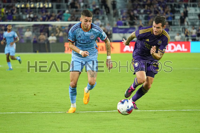 Orlando, Florida, USA, May 17, 2023, New York City FC player Gabriel Pereira runs after a pass at Exploria Stadium. (Photo Credit: Marty Jean-Louis)