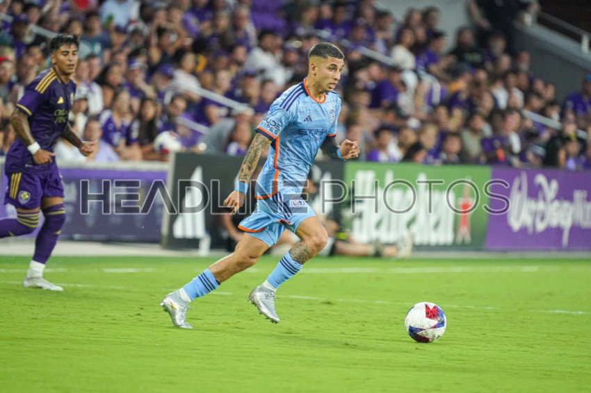 Orlando, Florida, USA, May 17, 2023, New York City FC player Santiago Rodriguez #10 readies to make a pass during the match at Exploria Stadium. (Photo Credit: Marty Jean-Louis)