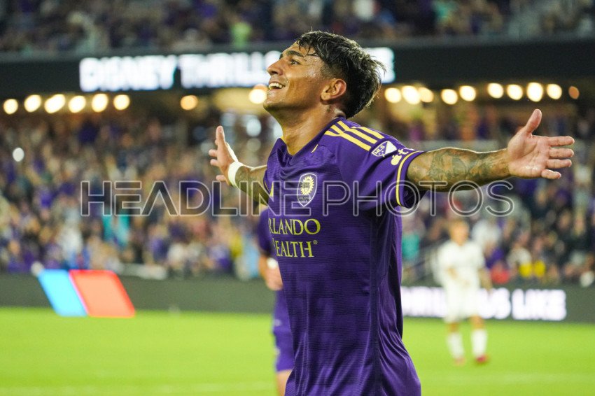 Orlando, Florida, USA, April 29, 2023, Orlando City SC midfielder Facundo Torres #17 celebrate after scoring against the LA Galaxy at Exploria Stadium. (Photo Credit: Marty Jean-Louis)