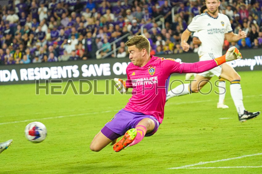 Orlando, Florida, USA, April 29, 2023, LA Galaxy goalkeeper Jonathan Klinsmann #33 attempt to make a save at Exploria Stadium. (Photo Credit: Marty Jean-Louis)