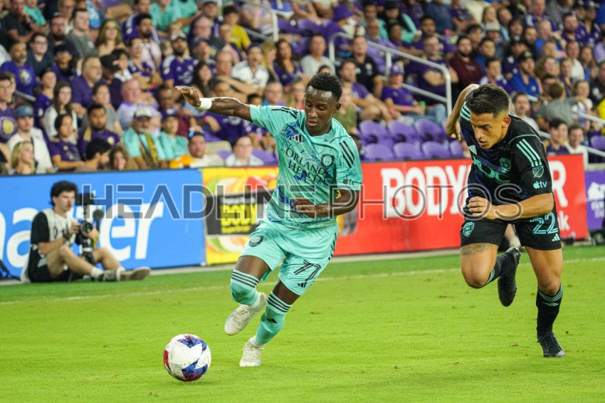 Orlando, Florida, USA, April 22, 2023, Orlando City SC midfielder Ivan Angulo #77 runs up field at Exploria Stadium. (Photo Credit: Marty Jean-Louis)