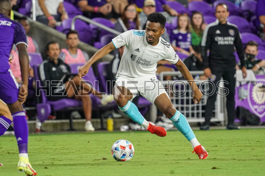 Orlando, Florida, USA, October 24, 2021, New England Revolution Midfielder Wilfrid Kaptoum #5 makes a move to run towards the goal at Exploria Stadium. (Photo Credit: Marty Jean-Louis)