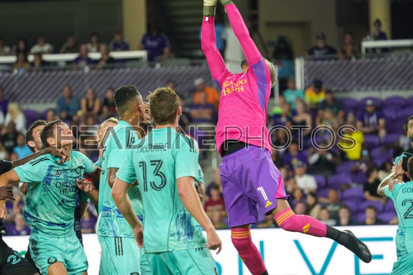 Orlando, Florida, USA, April 22, 2023, Orlando City SC goalkeeper Pedro Gallese #1 makes a save in the first half at Exploria Stadium. (Photo Credit: Marty Jean-Louis)
