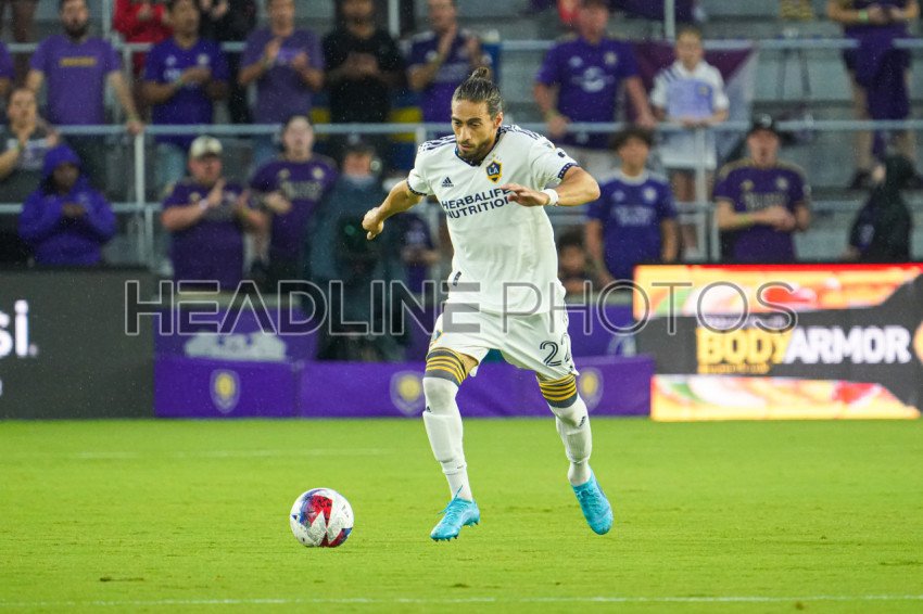 Orlando, Florida, USA, April 29, 2023, LA Galaxy defender Martín Caceres #22 readies to make a pass at Exploria Stadium. (Photo Credit: Marty Jean-Louis)