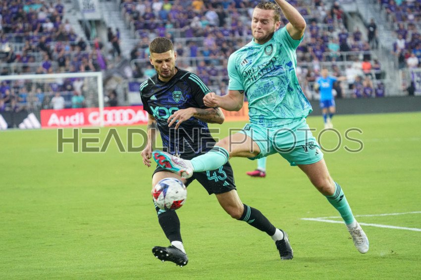 Orlando, Florida, USA, April 22, 2023, Orlando City SC forward Duncan McGuire #13 intercepts a pass in the first half at Exploria Stadium. (Photo Credit: Marty Jean-Louis)