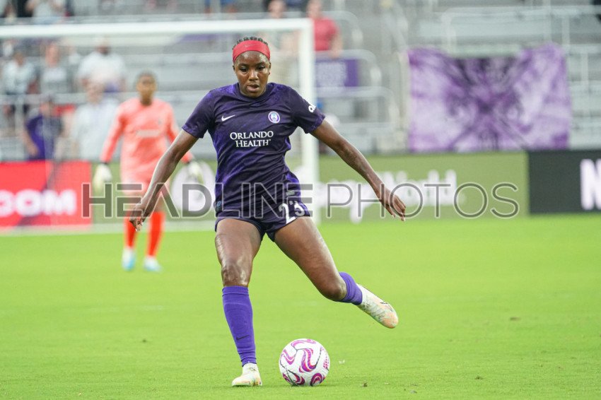 Orlando, Florida, USA, April 15, 2023, Orlando Pride forward Messiah Bright #23 makes a pass at Exploria Stadium. (Photo Credit: Marty Jean-Louis)