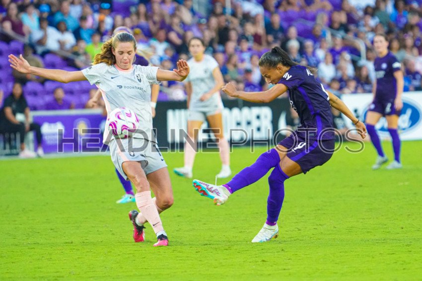 Orlando, Florida, USA, April 2, 2023, Orlando Pride player Adriana #9 attempt to score in the second half at Exploria Stadium. (Photo Credit: Marty Jean-Louis)