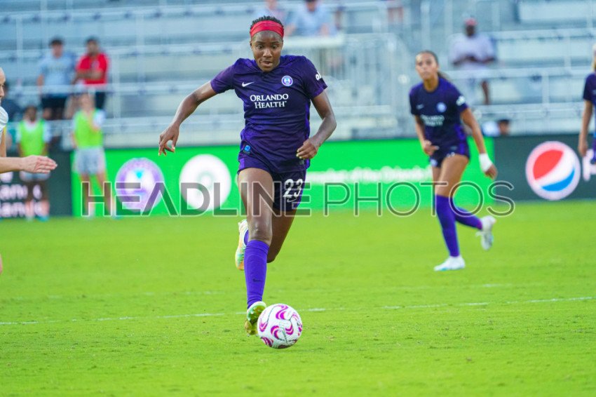 Orlando, Florida, USA, April 2, 2023, Orlando Pride player Messiah Bright #23 run up field in the second half at Exploria Stadium. (Photo Credit: Marty Jean-Louis)