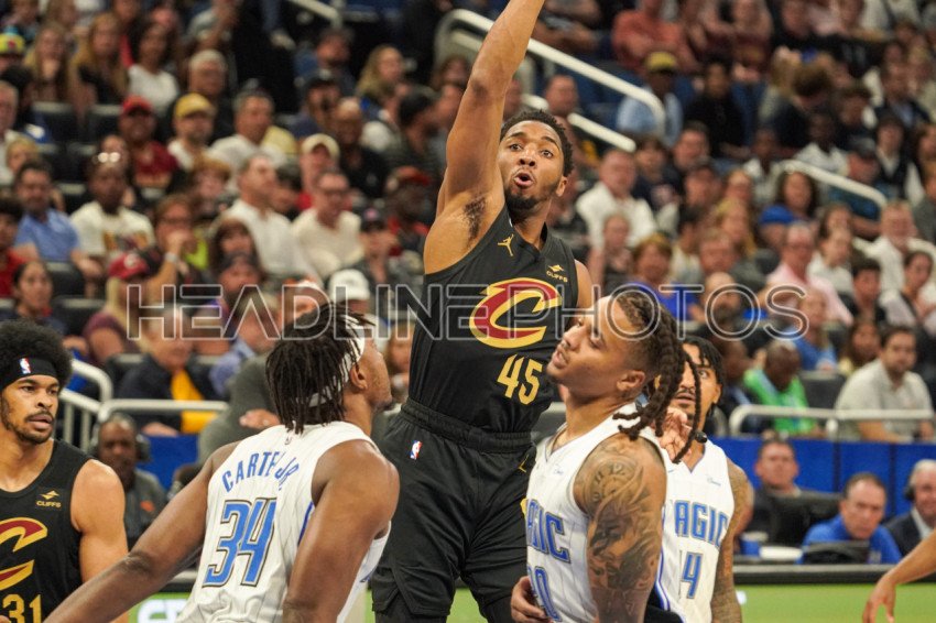Orlando, Florida, USA, April 4, 2023, Cleveland Cavaliers guard Donovan Mitchell #45 attempt to score in the first half at the Amway Center. (Photo Credit: Marty Jean-Louis)
