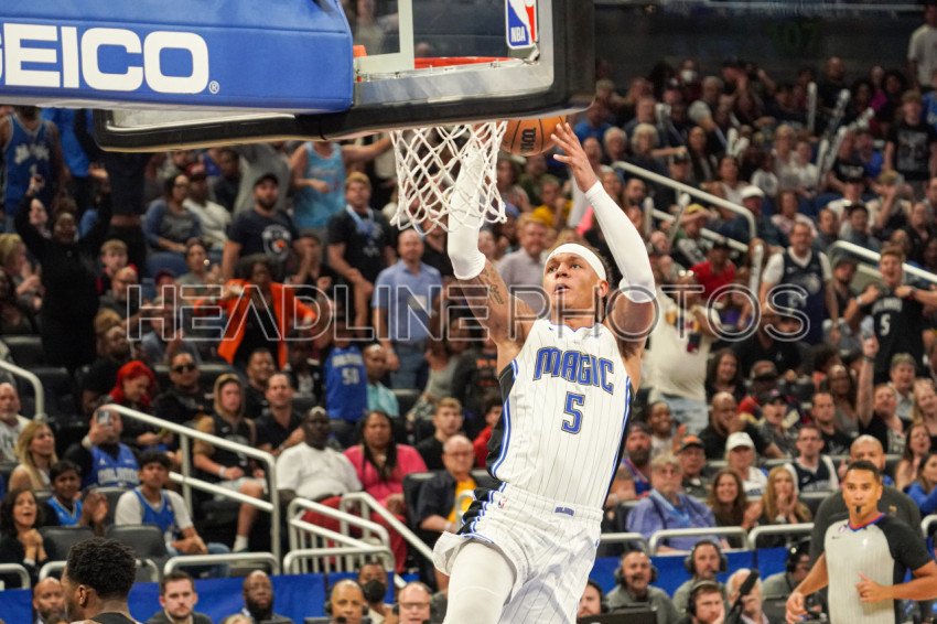 Orlando, Florida, USA, April 4, 2023, Orlando Magic forward Paolo Banchero #5 makes a basket in the second half at the Amway Center. (Photo Credit: Marty Jean-Louis)