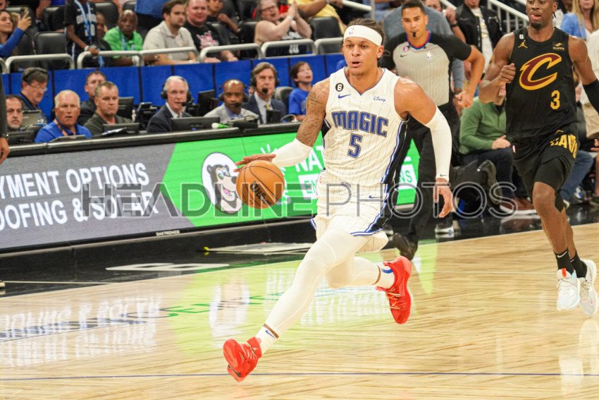 Orlando, Florida, USA, April 4, 2023, Orlando Magic forward Paolo Banchero #5 runs after stealing the ball in the second half at the Amway Center. (Photo Credit: Marty Jean-Louis)