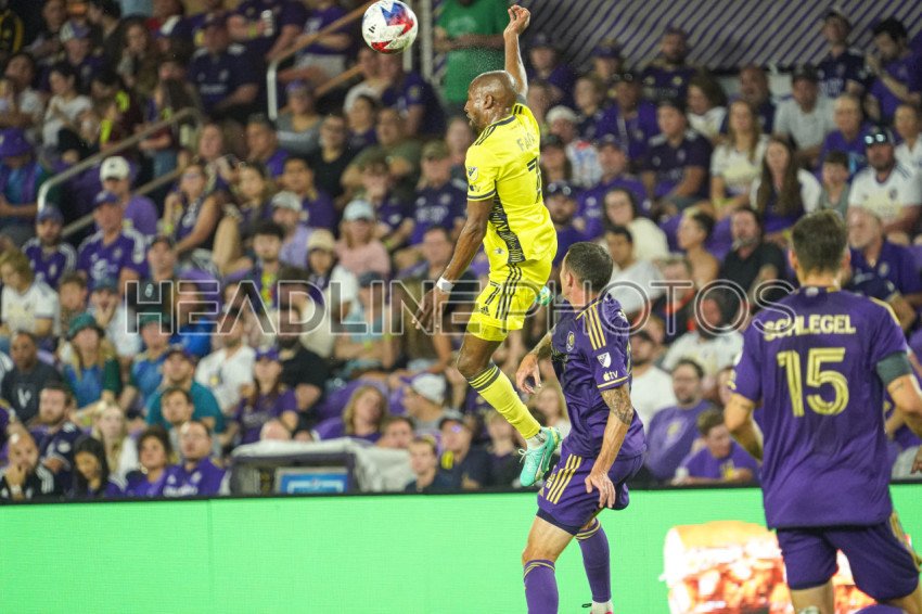 Orlando, Florida, USA, April 1, 2023, Nashville SC player Fabrice-Jean Picault #7 makes a header at Exploria Stadium (Photo Credit: Marty Jean-Louis)