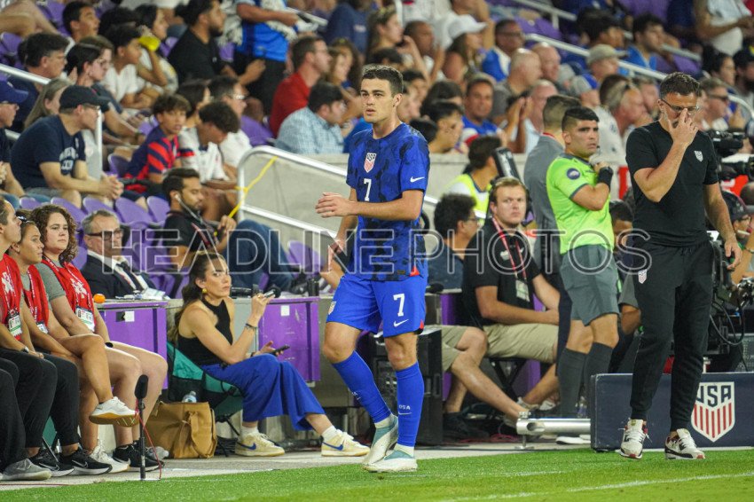 Orlando, Florida, March 27, 2023, USA forward Gio Reyna #7 leaves the pitch during the CONCACAF Nations League Match at Exploria Stadium. (Photo Credit: Marty Jean-Louis)