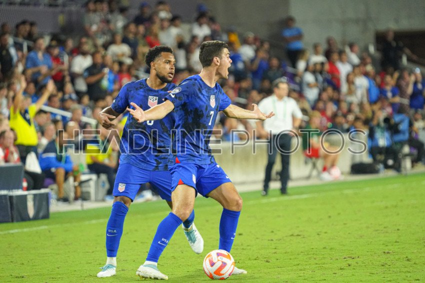 Orlando, Florida, March 27, 2023, USA forward Gio Reyna #7 reacts after a call from the ref during the CONCACAF Nations League Match at Exploria Stadium. (Photo Credit: Marty Jean-Louis)