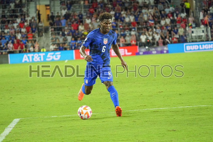 Orlando, Florida, March 27, 2023, USA Midfielder Yunus Musah #6 pushes forward during the CONCACAF Nations League Match at Exploria Stadium. (Photo Credit: Marty Jean-Louis)